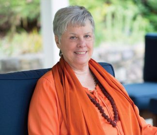 “Happy Birthday, Ashram! The gifts I receive from you far exceed the gifts I offer to you — Om Namah Shivaya,” says Gayatri Hess. “Through the Ashram, Swamiji makes herself and the teachings available in so many ways. She brings them to us through an amazing network of programs offered at the Ashram, online and by phone. I personally love the availability of writings and talks on line. I read the monthly contemplation and then listen to the corresponding online Satsangs prior to my morning meditation. I make regular visits to the Ashram. I love personal time with Swamiji, whether at lunch or one-on-one time through B&B weekends. The year-long phone course offers me the opportunity to take in the deeper teachings with direct feedback from Swamiji. This program also gets me closer to fellow yogis. The vowed order supports my yearning for the more, the Self. I bow again and again to Swamiji and the Grace of this lineage. I am blessed by the Ashram that gives so much.”