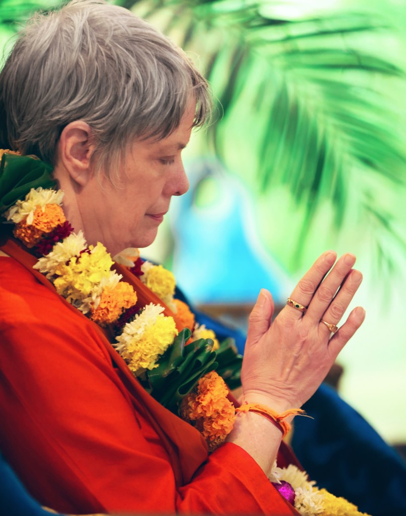 By becoming a vratin member of Svaroopa® Vidya Ashram, I took vows to live according to the yogic principles. Gurudevi beautifully outlines them in A Yogic Lifestyle. I have studied these teachings and read the articles that this book comprises many times before. Compiling them in this book, Gurudevi has created an amazing resource. It is gift to anyone — whether experienced or brand new to yoga — who wishes to delve into these universal principles. Gurudevi Swami Nirmalananda presents profound wisdom based in India’s ancient spiritual legacy. She offers these teachings succinctly, including personal, inspiring accounts relevant to the Western reader. She does so in service to her Guru, Swami Muktananda Paramahansa, and to you and to me. Her great reverence and devotion come across in every Grace-fueled word.