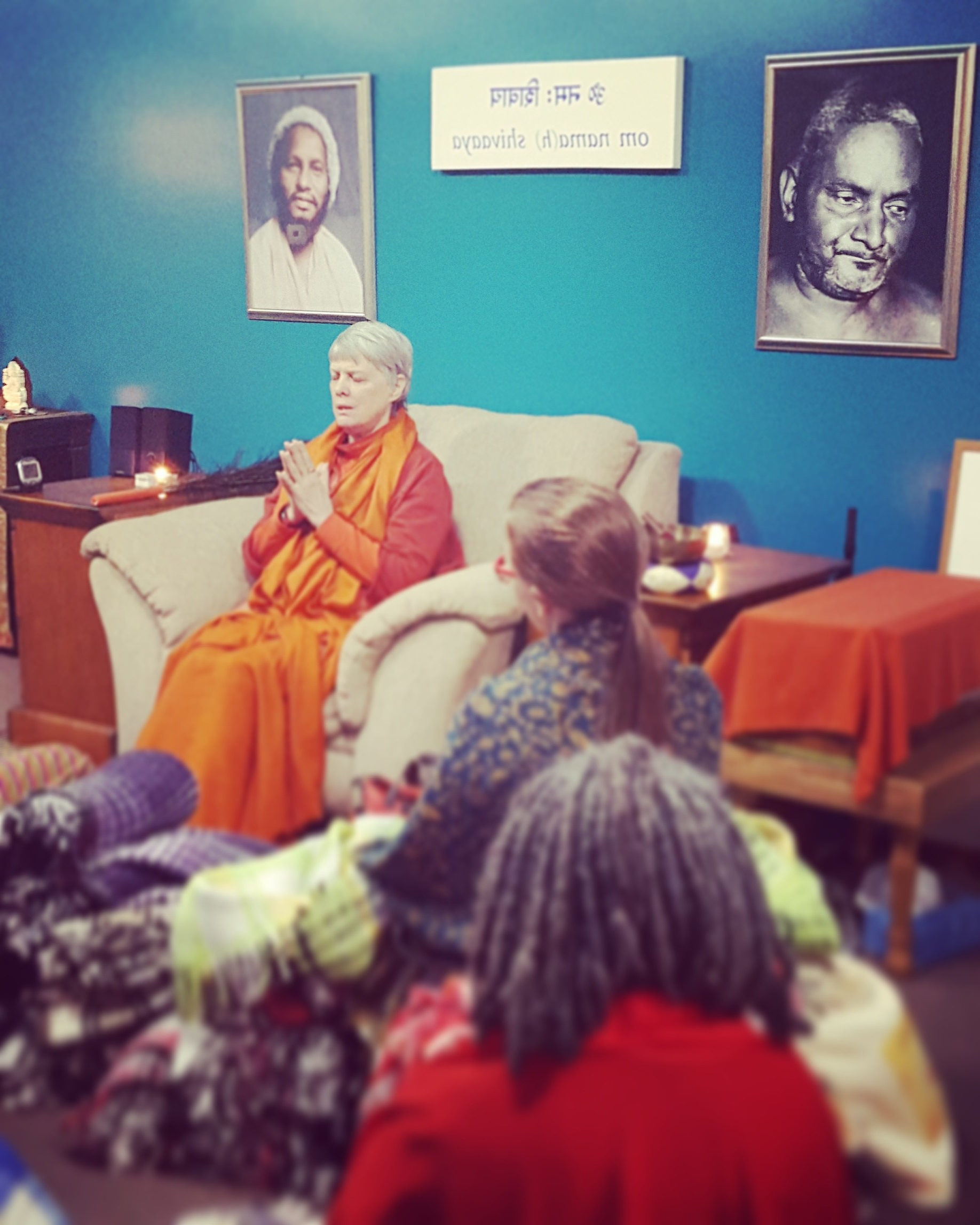 Svaroopa® Vidya Ashram is my home, which I share with other dedicated seekers. We offer several retreats and trainings each year, with participants staying in our retreat center. Our yoga classes are offered online as well as locally in Downingtown PA. I set up our online Freebies almost ten years ago, then the pandemic opened up new possibilities. Thus you will find many online offerings on our program calendar, including twice-weekly meditation satsangs.