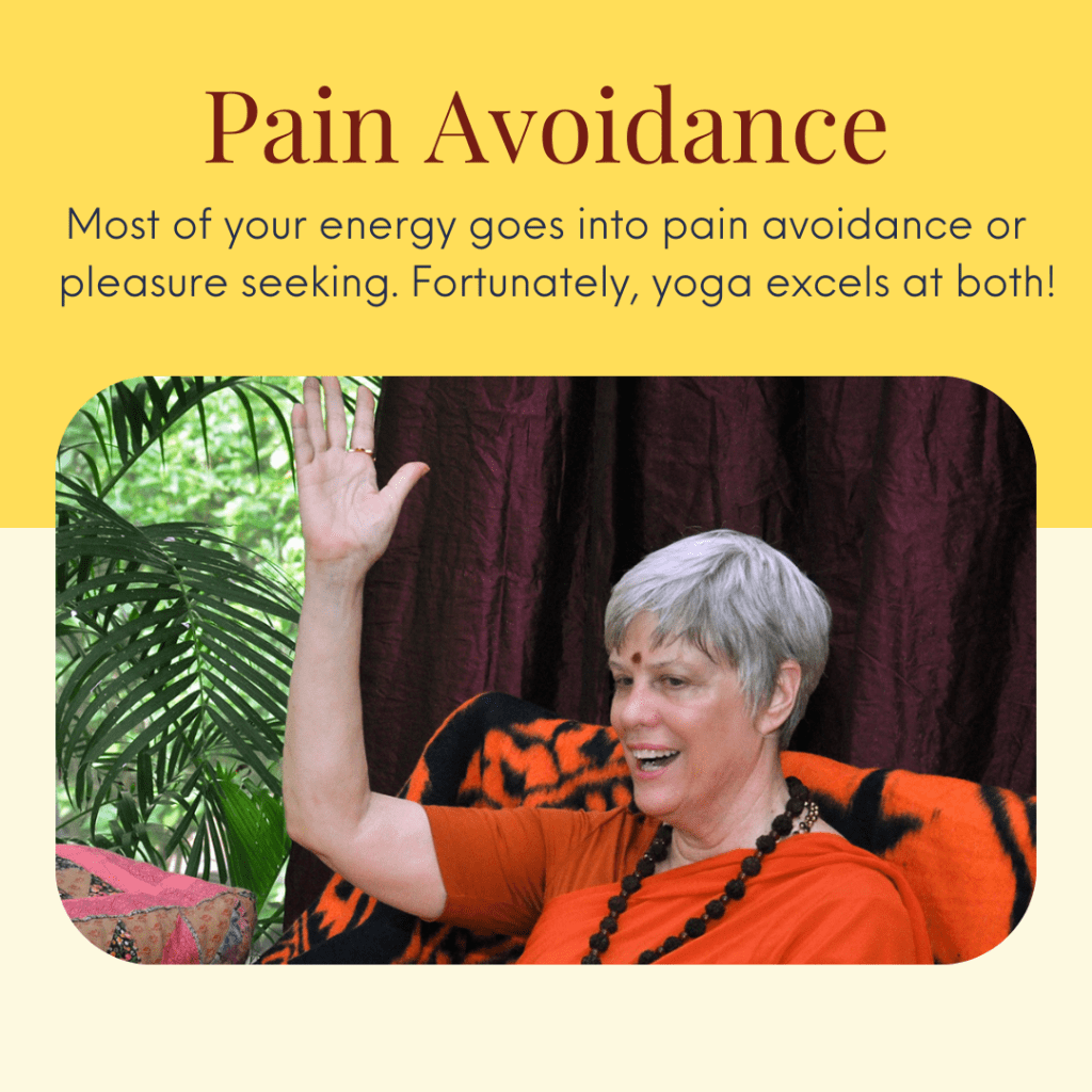 Pain is part of life. This is why most of your energy goes into pain avoidance or pleasure seeking. Fortunately, yoga excels at both!