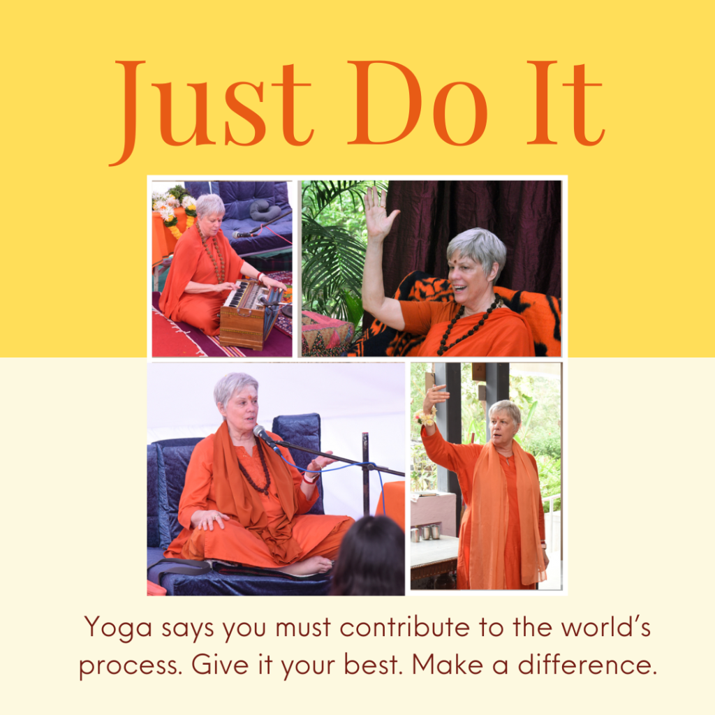 Krishna’s teaching was a radical revamp of the tradition. He said, “Get out there and make a difference in the world.” Why such a change? It was because the world had changed. He lived on the cusp of Kali Yuga, our modern age, predicted to be a time of increasing darkness. Krishna said the world needs the yogis. You must bring your light into the world. Get up and get going. Just do it.