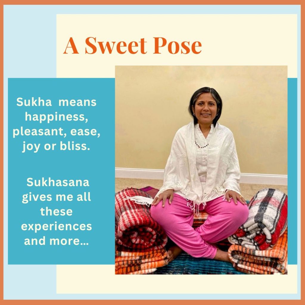 The sweetness of sitting is found in Sukhasana, one of my favorite poses. The name says it all. Sukha in Sanskrit means happiness, pleasant, ease, joy or bliss.