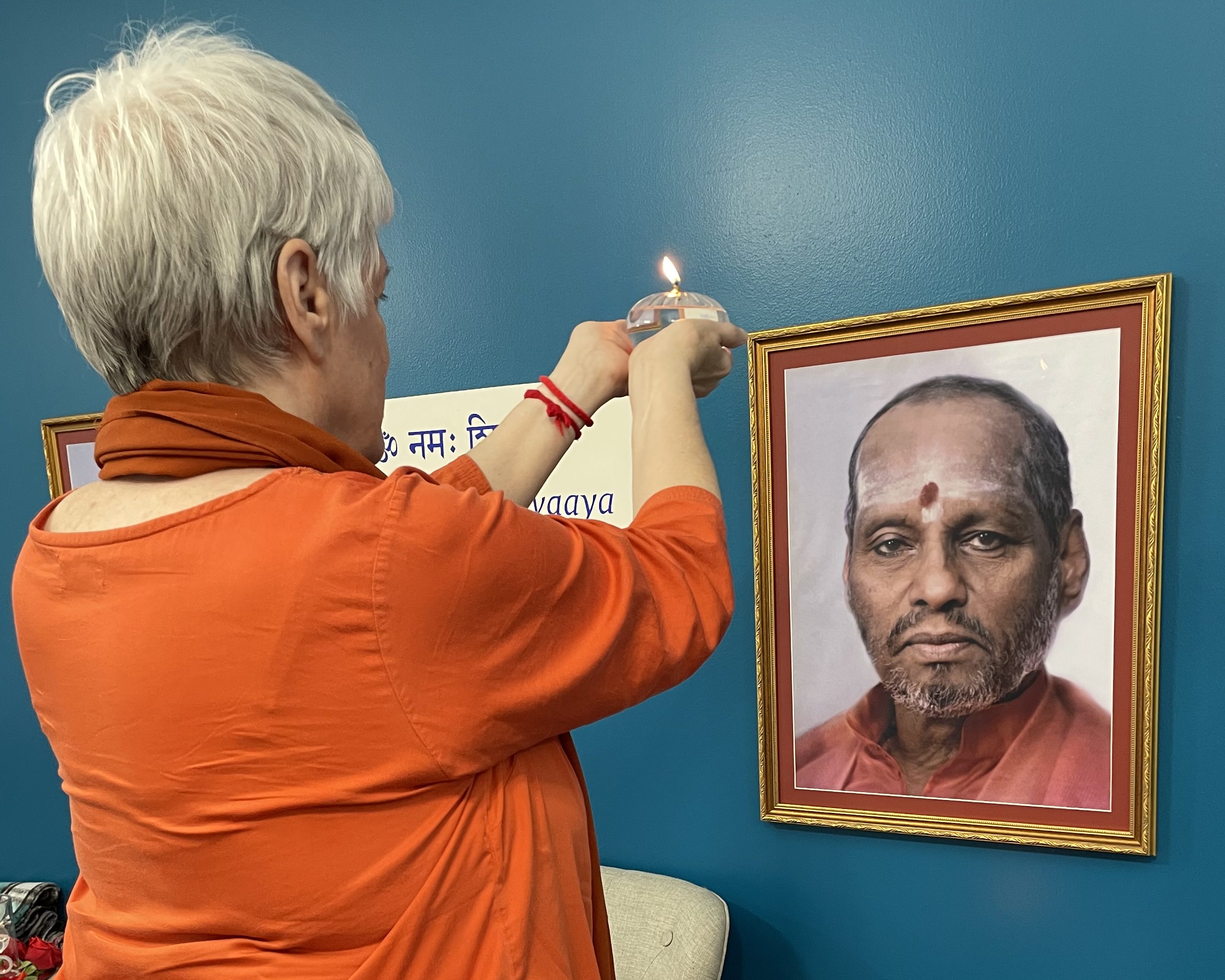 Chant the mantra, using one of my recordings. Do arati, the candle flame ceremony, to honor the Guru, including my Guru and his Guru.