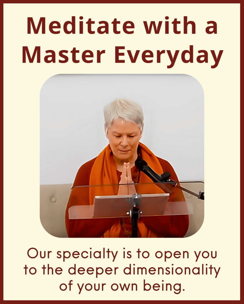 When I’m in a program with my Guru, Swami Nirmalananda, I feel a presence, peace and a power. Her gift of Shaktipat gave me the experiential knowing of my Self.