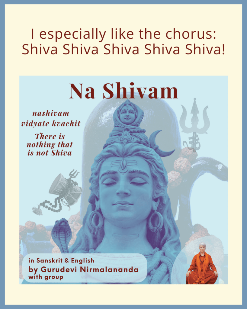 For months, I’ve been listening to Gurudevi Nirmalananda’s recording of “Na Shivam.”