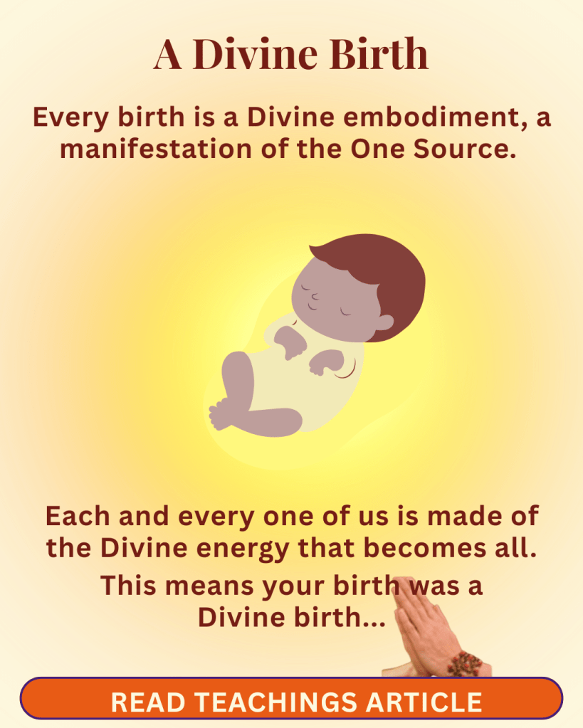 Every birth is a Divine embodiment, a manifestation of the One Source. Each and every one of us is made of the Divine energy that becomes all.