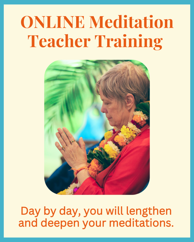 When you return home, your online classes begin. Plus you get daily group meditations and weekly meditation programs with Gurudevi Nirmalananda. This ensures that you continue to marinate in Consciousness.